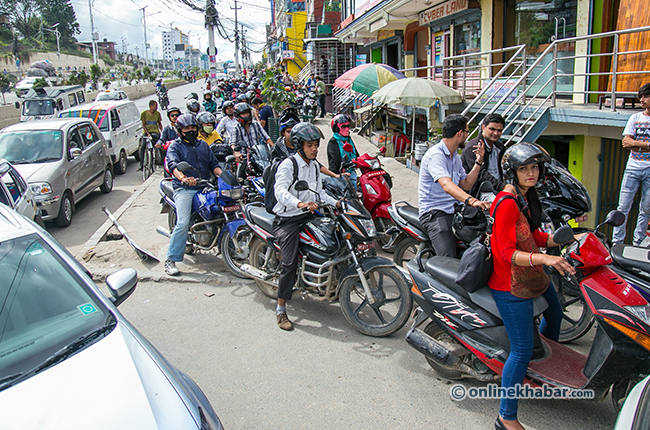आयल निगमले मंगलबारदेखि मोटरसाइकल र स्कुटरलाई लटका आधारमा दिन बिराएर पेट्रोल वितरण सुरु गरेको हो । प्रत्येक मोटरसाइकल र स्कुटरले चार लिटरका दरले तेल पाउनेछन् ।